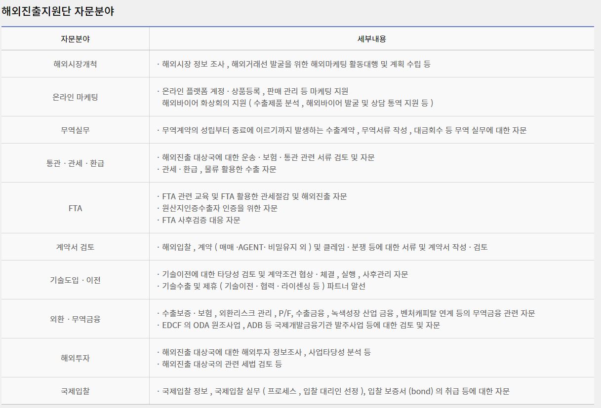 해외시장 개척, 온라인 마케팅, 무역실무, 통관·관세·환급,